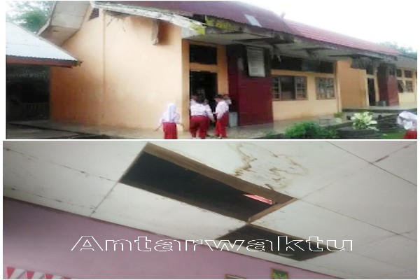 Lanjut nya, atapnyapun banyak yang bocor, kami pihak sekolah sudah berusaha memperbaiki menempel pada beberapa atap kelas yang bocor, namun karena kondisi kayu penyangga pada atap dan plafon itu lapuk tukang yang kami arahkan itu tidak berani dan tidak mau ambil resiko karena bahaya bila di teruskan pekerjaan nya. dan mirisnya lagi bila waktu hujan masih dalam jam belajar kami terpaksa memindahkan anak anak ke ruang kelas sebelah karena ruang kelas itu basah bocor, tutupnya.