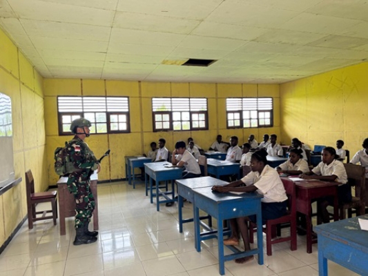 • Satgas Yonif 141/AYJP Berbagi Buku Untuk Siswa SMPN 1 Kimaam di Perbatasan RI-PNG