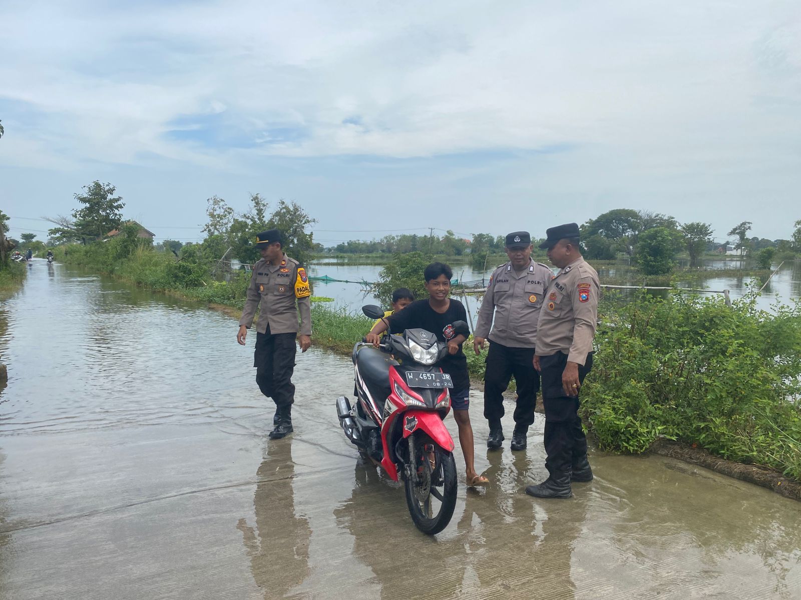 IPTU Heri juga telah melibatkan beberapa Anggota untuk memantau wilayah yang terdampak Banjir seperti jalan Desa wilayah yang tergenang banjir Jalan Dsn Glumo Desa Jelakcatur dan Tiwet
