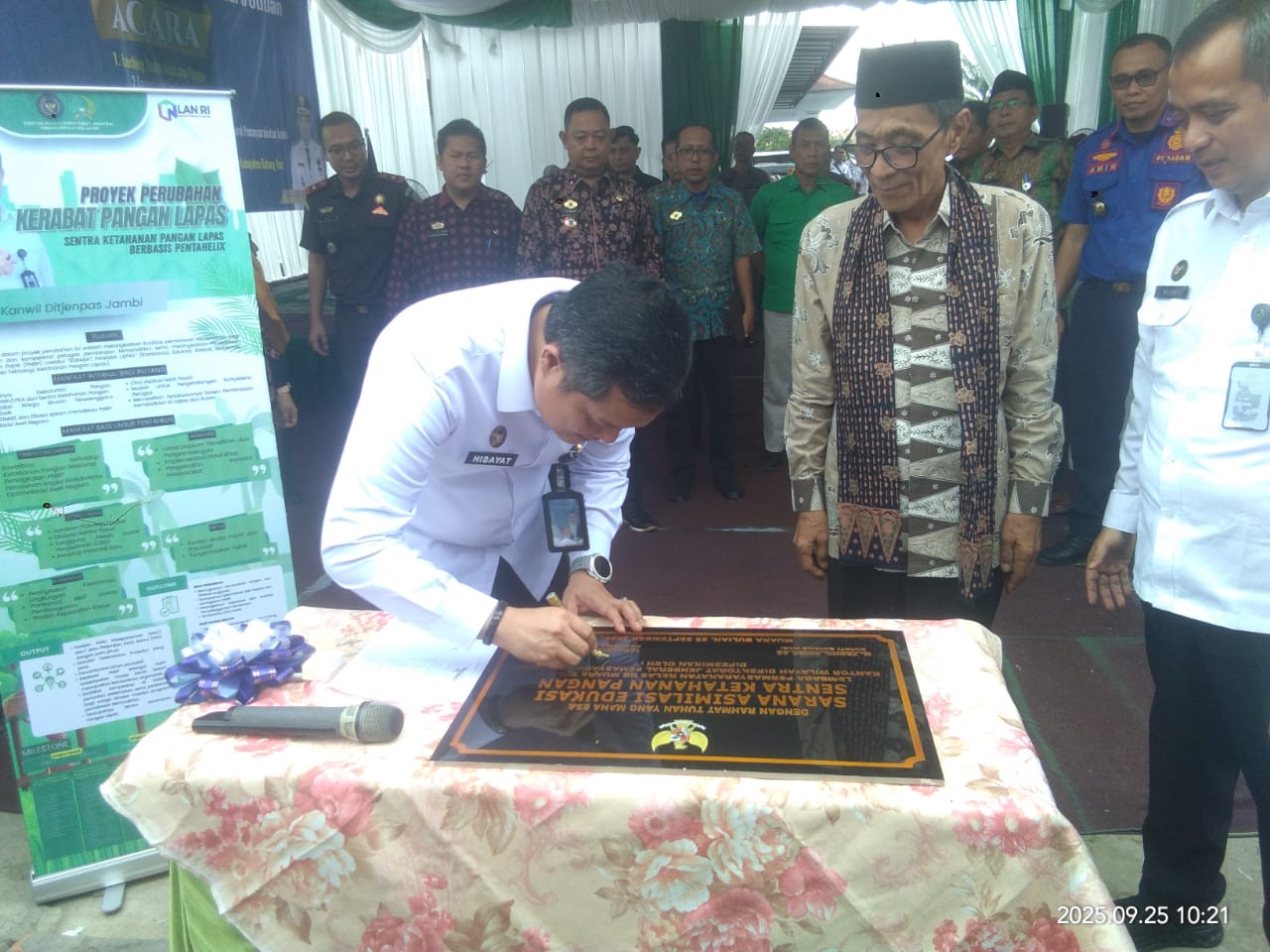Batang Hari | antarwaktu.com – Wakil Bupati Batang Hari H. Bakhtiar, Sp ikuti launching sentral ketahanan pangan, kios pangan, brizzi serta penandatanganan nota kesepakatan pemahaman antara Kantor Wilayah Direktorat Jenderal Pemasyarakatan (Kanwil Ditjenpas) Jambi dengan Pemkab Batang Hari pada, Kamis (25/9).