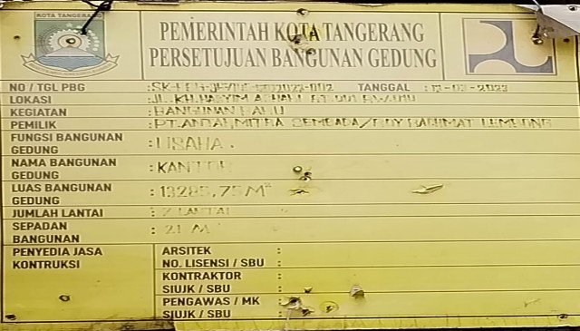 Terpisah, Saat dilakukan pengecekan, Menurut Indri salah satu customer service di Dinas Penanaman Modal Dan Pelayanan Satu Pintu Kota Tangerang (DMPTSP) Kota Tangerang, ”Nomor PBG Kota Tangerang harusnya diawali angka 36, dari nomor Persetujuan Bangunan Gedung yang ada difoto, sepertinya tidak terdaftar”,ujarnya sembari memperlihatkan hasil pengecekan di komputer nya.