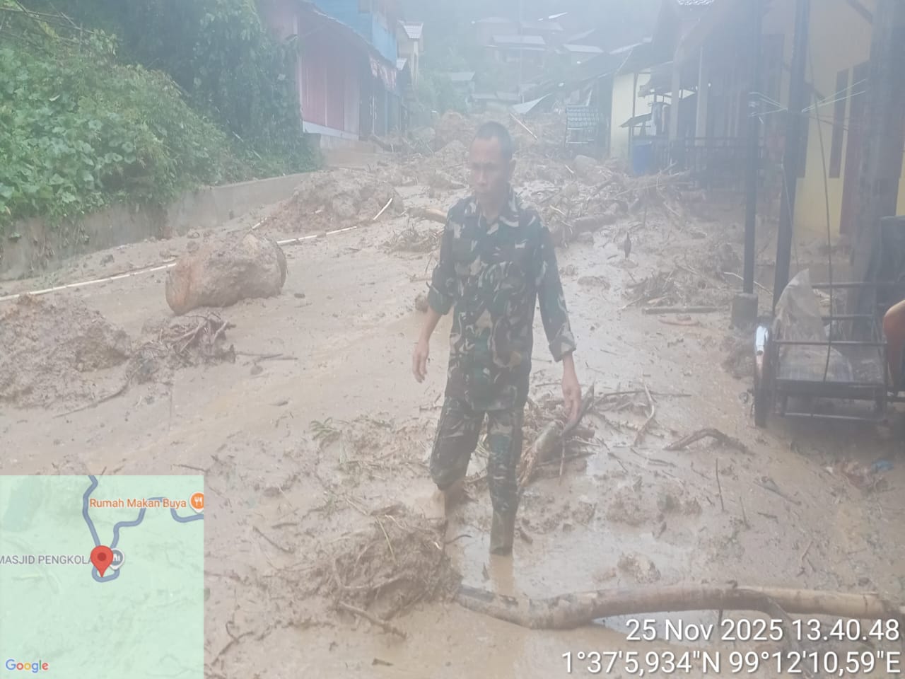 Jakarta | antarwaktu.com – Prajurit TNI dari Koramil 01/Batangtoru, Kodim 0212/Tapsel bertindak cepat dalam membantu warga yang terdampak banjir di Desa Garoga, Kecamatan Batangtoru, Tapanuli Selatan, Selasa (25/11/2025). Curah hujan tinggi yang melanda sejak pagi hari menyebabkan debit air sungai meluap dan merendam permukiman, membuat sebagian warga harus dievakuasi menuju titik aman. Para prajurit bergerak tanpa menunda waktu, mendatangi rumah-rumah warga untuk memastikan keselamatan masyarakat terdampak.