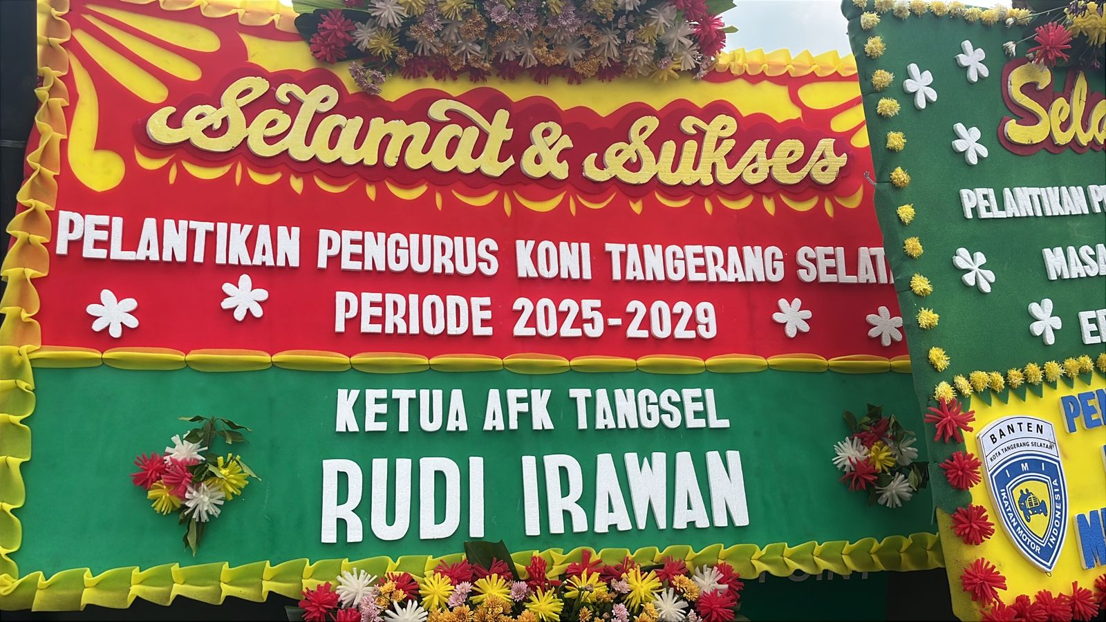 Karangan bunga ucapan selamat tersebut berasal dari berbagai kalangan mulai dari Pemerintah Daerah Kota Tangerang Selatan, Kepala Dinas, Anggota DPRD Provinsi Banten, serta Unsur Forkopimda, dan pengurus cabor se-Tangerang Selatan.