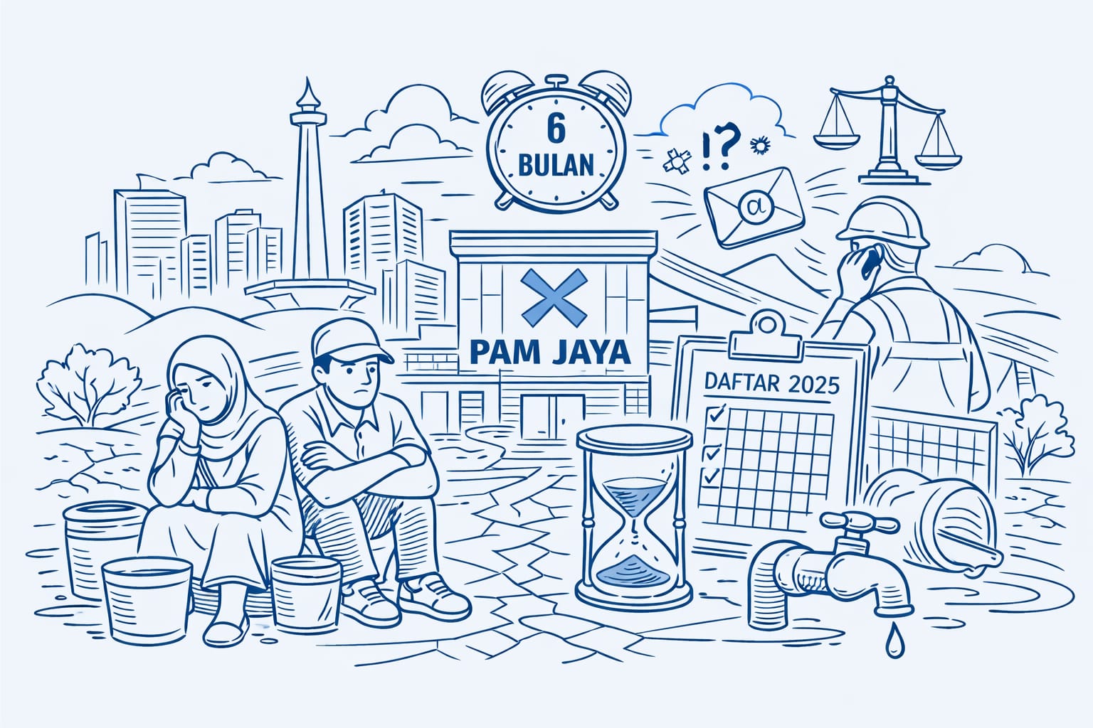 Jakarta | antarwaktu.com – Lambannya pelayanan pemasangan jaringan air bersih kembali dikeluhkan warga DKI Jakarta. Kali ini, dua warga di wilayah Pedongkelan, Cengkareng, Jakarta Barat, mengaku telah menunggu hingga enam bulan sejak melakukan pendaftaran, namun hingga kini belum juga menikmati layanan air bersih dari PAM Jaya.